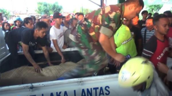 Ketiga korban tewas yakni, Serda Jarni, sopir pikap Bambang Purbudiyanto warga Sudimoro, Kabupaten Pacitan; dan Badriyah, keluarga pemilik warung makan. Sedangkan satu anggota TNI lainnya yang menderita luka-luka sudah dilarikan ke RSUD Kertosono untuk mendapat perawatan medis.