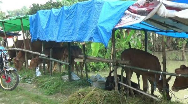 Tidak hanya orang yang mengungsi, ratusan ternak sapi milik warga juga ikut diungsikan ke atas tanggul, setelah kandangnya terendam banjir sejak Jumat kemarin. “Karena kan tempatnya tidak bisa dipakai lagi karena banjir. Makanya sapinya saya bawa ke sini,” kata Sardi, salah seorang pemilik ternak sapi di Desa Ngulanan.