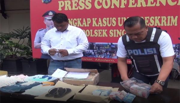 Pelaku diketahui jadi buronan polisi sejak sepekan lalu setelah aksinya terekam kamera CCTV. Belakangan diketahui, pelaku bersembunyi di Desa Selogabus, Kabupaten Tuban. Selain menangkap tersangka, polisi juga mengamankan sejumlah barang bukti di antaranya sisa uang tunai sebesar Rp146,5 juta, ponsel, tas baru, masker, sandal, sepatu, motor, dan kartu ATM.