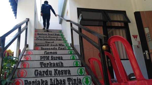Dekorasi di Puskesmas Sempu yang menjadi daya tarik pengunjung berfoto-foto. (Foto: iNews.id/AM Ikhbal).