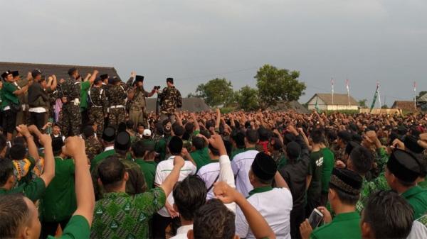 Dia menanyakan kesiapan Banser membela Negara Kesatuan Republik Indonesia (NKRI) dan kiai. “Siap membela NKRI? Siap membela Kiai? Siap mengawal NU?" dijawab ribuan Banser dengan, "Siap!"