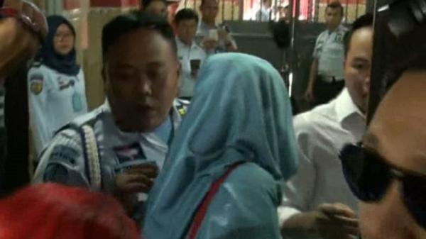 Dari pantauan, Mulan datang bersama kerabatnya sekitar jam 08.45 WIB menggunakan pakaian muslim berwarna biru. Turun dari mobil, mereka langsung menuju Rutan Kelas 1 Khusus Surabaya di Desa Medaeng, Kecamatan Waru.