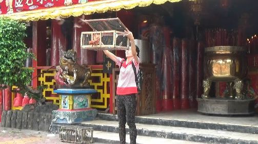 Menurut penuturan Liany, seorang warga Tionghoa, umat sedang menjalani ritual Fang She, yakni melepas mahluk hidup (burung). Ritual itu dimaksudkan sebagai bentuk pelepasan segala hal yang buruk. “Kami sekaligus bermohon dan memohon panjang umur,” kata Liany.