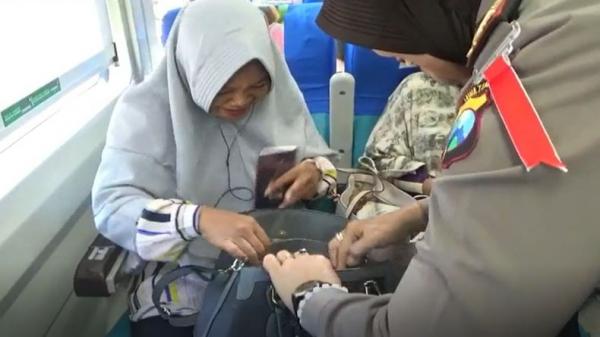 Tidak hanya memeriksa identitas dan tujuan keberangkatan, petugas gabungan ini juga memeriksa barang bawaan para calon penumpang dengan target senjata tajam, senjata api (senpi) dan juga barang berbahaya lainnya di gerbong penumpang.