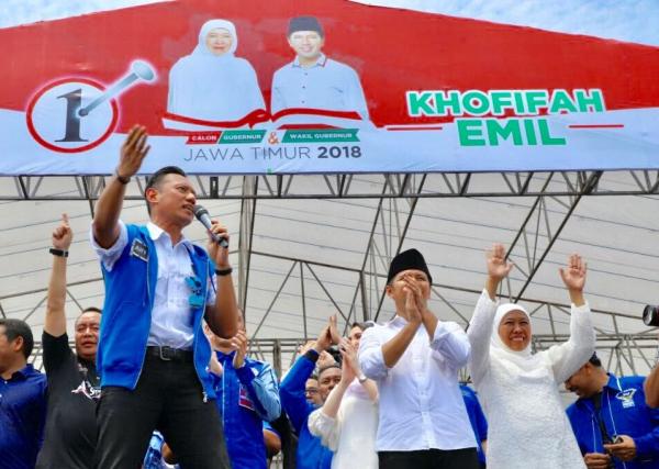 Agus Harimurti Yudhoyono (AHY) saat menghadiri kampanye bersama pasangan Khofifah Indar Parawansa-EMil