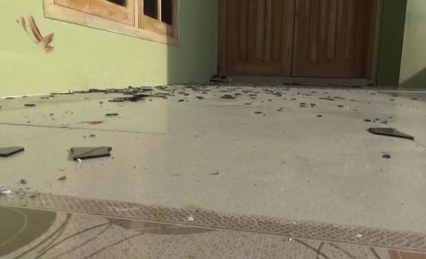 Pantauan wartawan iNews Minggu pagi, tampak kaca jendela berserakan dan ada bekas darah di teras rumah tersebut.
