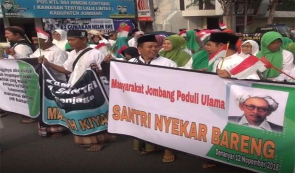 Aksi ratusan santri dan warga NU tersebut juga mendapat dukungan dari Pemkab Jombang. Hal itu terlihat hadirnya Sekda Jazuli mewakili Pemkab Jombang dalam aksi tersebut.