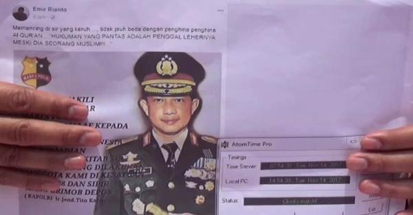 Kepada penyidik, Emir yang saat ini telah ditetapkan sebagai tersangka mengaku mengunggah postingan bernada SARA hanya untuk membela agamanya dan merasa jengkel kepada kelompok lain selain kelompoknya.