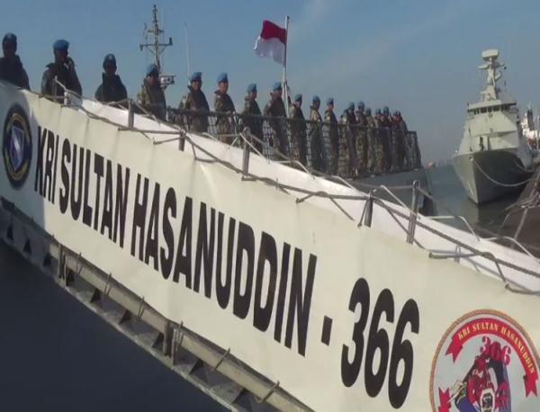 Kapal perang KRI-Hasanuddin 366 membawa artileri, satu unit helikopter Berco, dan membawa ratusan prajurit perang yang terbagi dalam unit pilot dan crew helikopter, pasukan katak, dan penyelam, serta perwira penerangan dan informasi intelegent.