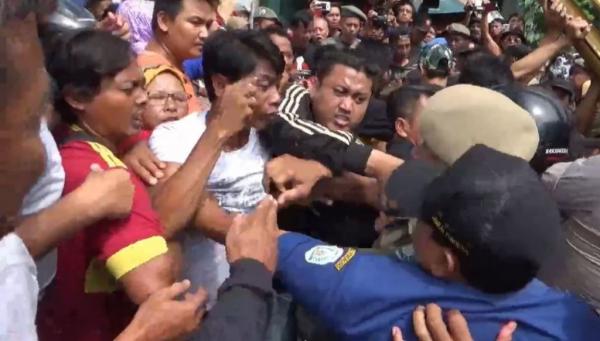 PONOROGO, iNews.id - Kericuhan terjadi antara ratusan pedagang Pasar Eks Stasiun dibantu sejumlah mahasiswa dengan Satpol PP dan polisi, di Ponorogo, Jawa Timur, Senin (21/1/2019) siang. Massa yang berusaha menghadang alat berat yang hendak menggusur bangunan pasar dihalang-halangi aparat yang berjaga. Sejumlah pedagang dan mahasiswa diamankan petugas dalam bentrokan ini.